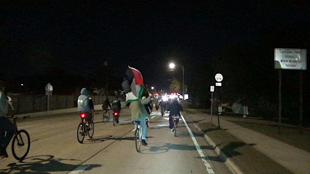 A banner was also attached to the fence reading “Palestinian Children are not collateral damage.”