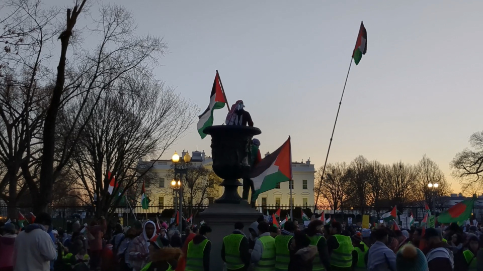For the Iron Snowflake report with more detail on the fracas at the riot fence outside the White House, see https://ironsnowflake.blackblogs.org/2024/01/14/march-on-washington-for-gaza-reportback/