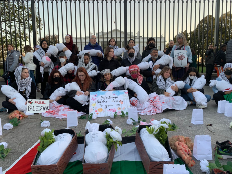 On the 11th of November, protesters horrified by Israel’s wholesale slaughter in Gaza held a die-in at the White House, complete with what appeared to be dead children in burial shrouds. This was on the day the death toll in Gaza(population is 1/2 children!) passed 11,000.