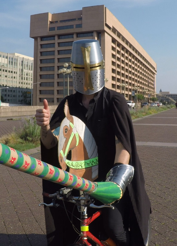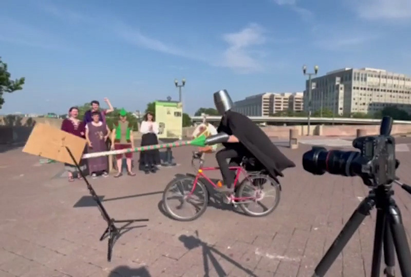 Extinction Rebellion DC challenged Washington Gas to a joust over the future of their $5B “project pipes” in Banneker Park on the 7th of July. Washington Gas was a no-show, so contestants best described as the Green Knight vs the Gas Knight (stand-in for Washington Gas) jousted against targets for the win. Washington Gas’s stand-in just could not hit their climate targets.