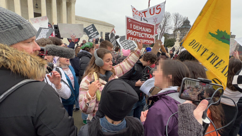 swarms of forced-birthers descended on marchers at the Supreme Court and things got pushyAnother view of the mess at SCOTUS