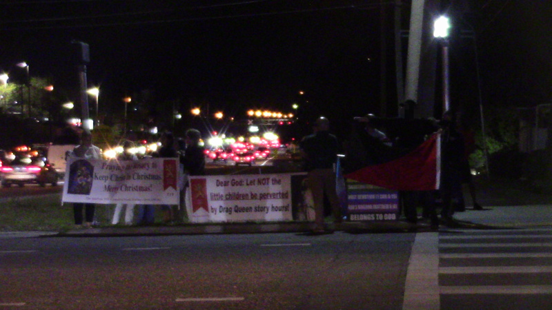 On the 29th of December, the final performance of “A Drag Queen Christmas” took place in Clearwater, Florida. Members of Cavalry Christian Worship Center (an extreme Christian Cult) and 3 or 4 Proud Boys were unable to overcome defenders much less attempt to shut down the show itself. Again the Governor’s interference and threats were unable to stop the show, again the show went on. Some attendees cheered counterprotesters on the way in and out.