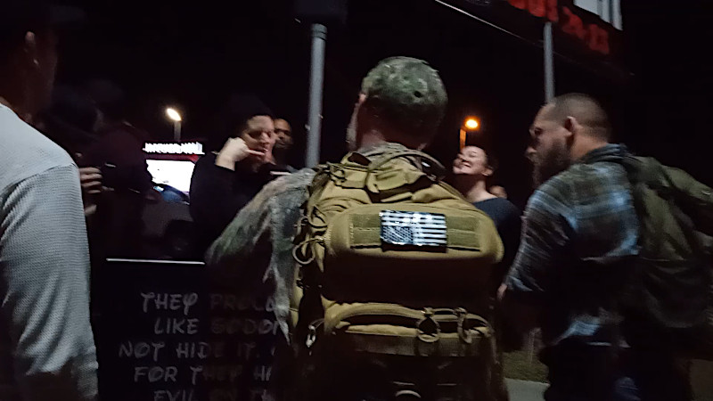 Front line in front of the venue Christian nationalists trying to protest the drag show only to find their amplified speakers could not drown out singing by counterprotesters