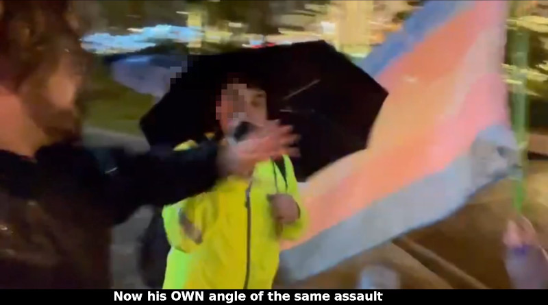 Fascist livestreamer Chris Nelson slaps at an anti-Fascist camera operator’s camera