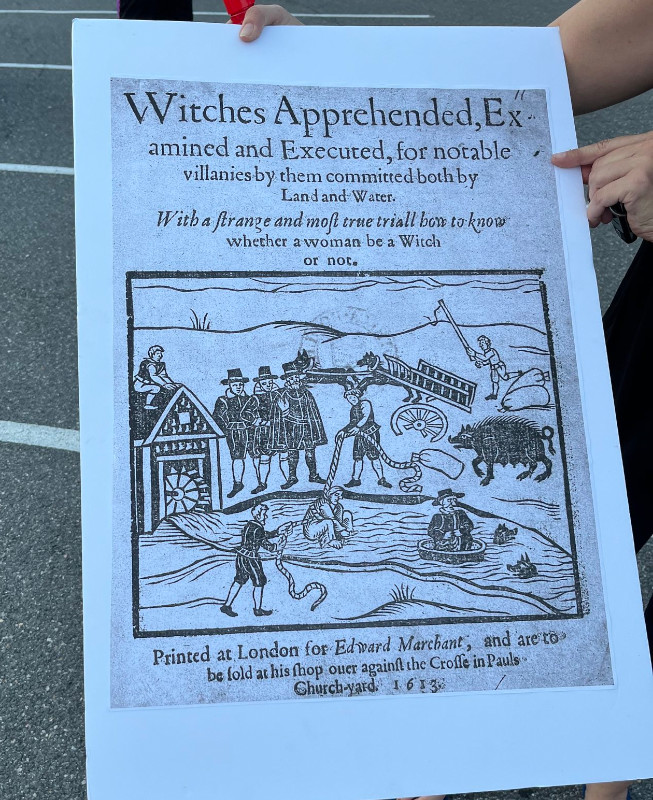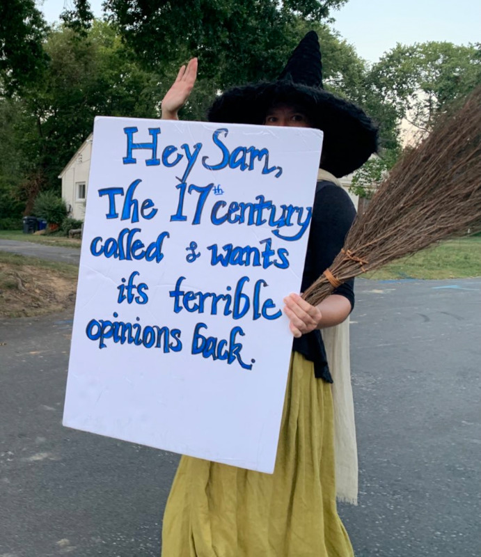 On the 27th of August, protesters returned to the N Va home of Supreme Court “Injustice” Samuel Alito yet again. This time around, the protest focussed on Alito’s use of Matthew Hale’s writings as source material for the Dobbs/abortion ruling. Protester, one dressed as a “Halloween Witch” called out Matthew Hale’s executions of women for witchcraft.