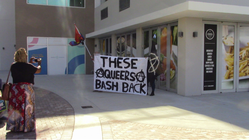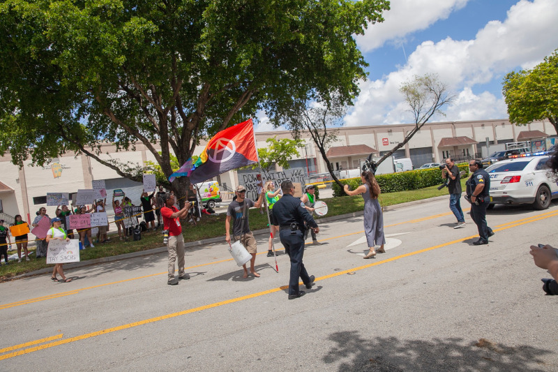 Every time Proud Boys and Fascists attempted to close on the protesters, the cops realized the resulting battle would go poorly for the Proud Boys and the press would be awful for DeSantis. This resulting in cops doing the jobs of anti-fascists themselves, pushing their fellow fascists away from the protesters. Cops made threats of “trespass” events against the protesters, only to have the media “engage with large caliber video cameras” which caused the cops to back off.
