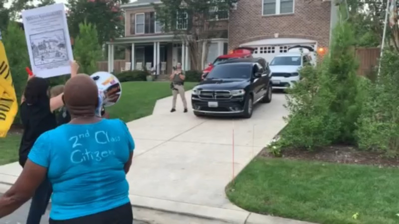 The drenching thunderstorms of Aug 10 cut power, flooded roads, and even forced high/swift water rescues. None of that stopped a hard core of pro-choice protesters from getting past all the obstacles to protest at the home of Supreme Court “Justice” Kavanaugh at the usual time and day.