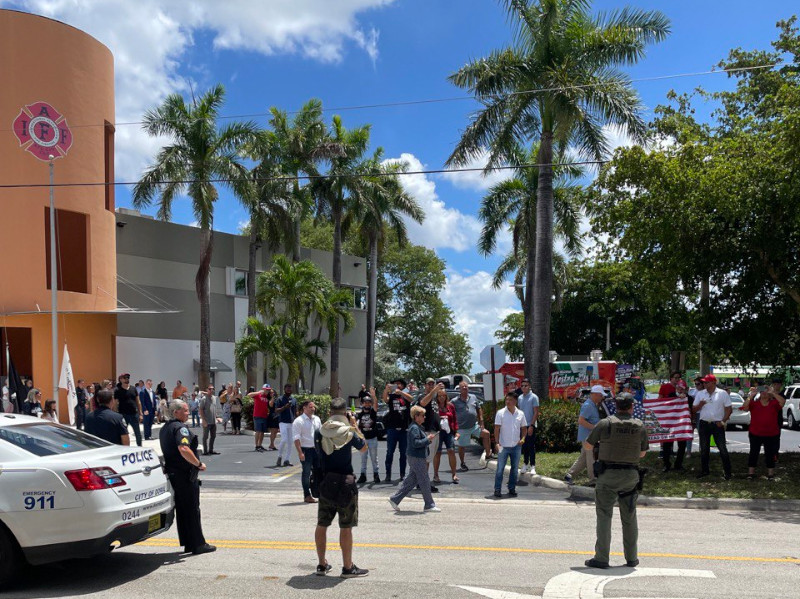 Memmbers of the Vice City and Broward County chapters of the Proud Boys and so-called “Moms for Liberty” were spotted outside the event.