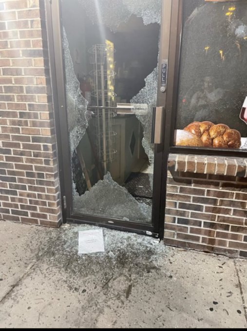 Broken door at Uprising Cafe and Bakery in Lake In The Hills, Chicago.