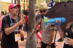 One or more of the extreme-right protesters in Kensington, MD showed up in this car. Multiple extreme-right stickers on display