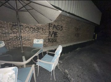 Hate graffiti scrawled on Uprising Cafe and Bakery in Lake In The Hills, Chicago.