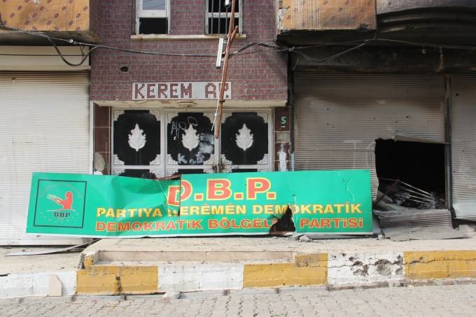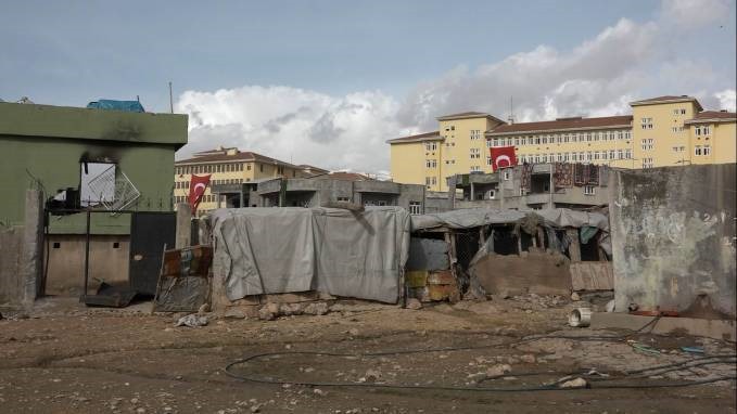 Die Gebäude, die vom türkischen Militär und der Polizei besetzt gehalten werden, sind stark zerstört und waren Ziele der schweren Angriffe gegen die Menschen. Da selbst die Moscheen nicht mehr betretbar sind, hat das türkische Militär nun auch andere hohe Gebäude besetzt, die sie zuvor gewaltsam geräumt haben, um weiterhin die Stadt kontrollieren zu können. Die Fenster der stark zerstörten Gebäude wurden mit Sandsäcken zugemauert, so dass aus den Gebäuden militärische Festungen wurde.
