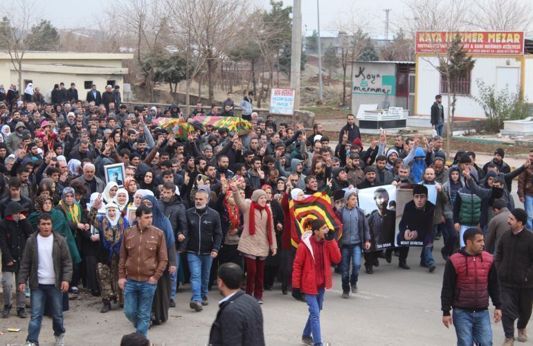 Hunderte Fahrzeuge bildeten einen Konvoi, um İsa und Mesut zum Yenişehir Friedhof zu begleiten. Tausende Menschen, einschließlich parlamentarischer Vertreter_innen für Amed formierten einen Trauermarsch, riefen Parolen und trugen die Leichname auf ihren Schultern zu den Gräbern. Die zwei jungen Männer wurden nebeneinander beigesetzt. Nach der Bestattung sang die Menschenmenge gemeinsam „Çerxa Şoreşe Rojava“, den revolutionären Marsch von Rojava.