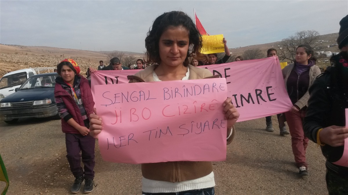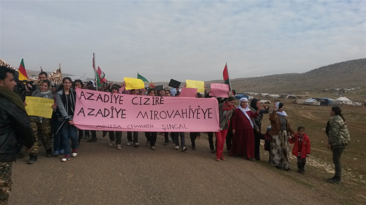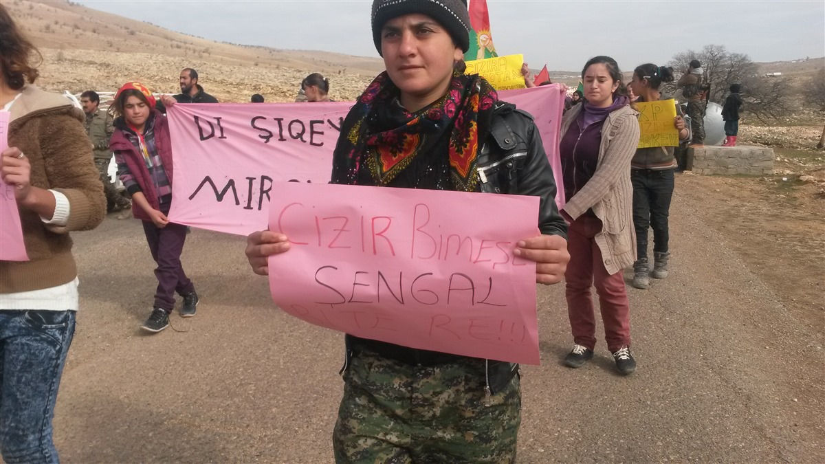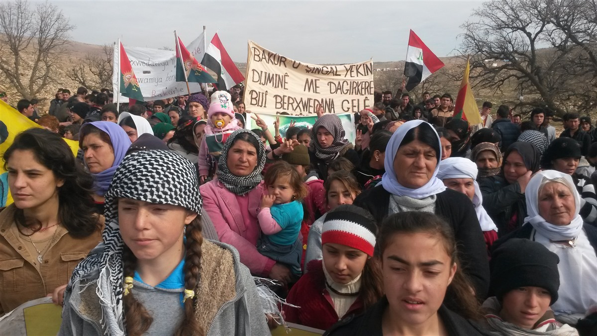 Der HPÊ (Hêza Parastina Êzîdxan – Verteidigungskräfte Êzîdkhans) Kommandant, Heydar Şeşo, der ebenfalls an der Demonstration teilnahm, betonte die Wichtigkeit des Volkswiderstandes für die Verteidigung der Selbstverwaltung, die nunmehr seit über 2 Monaten anhält.