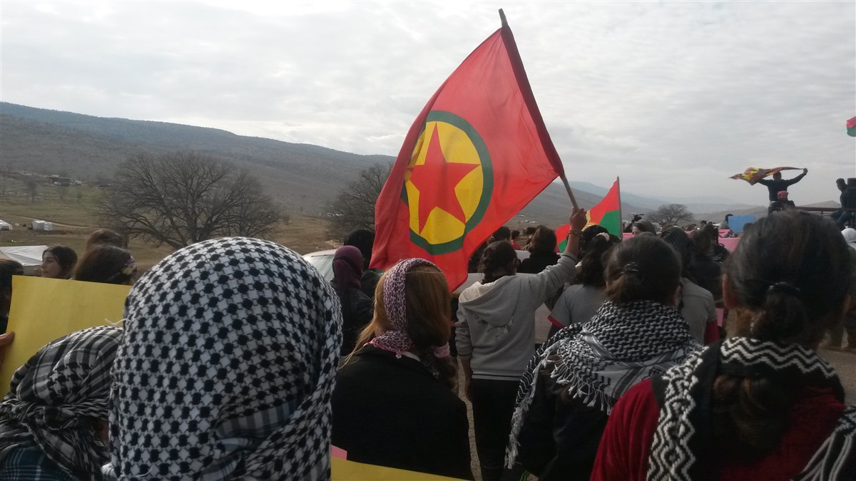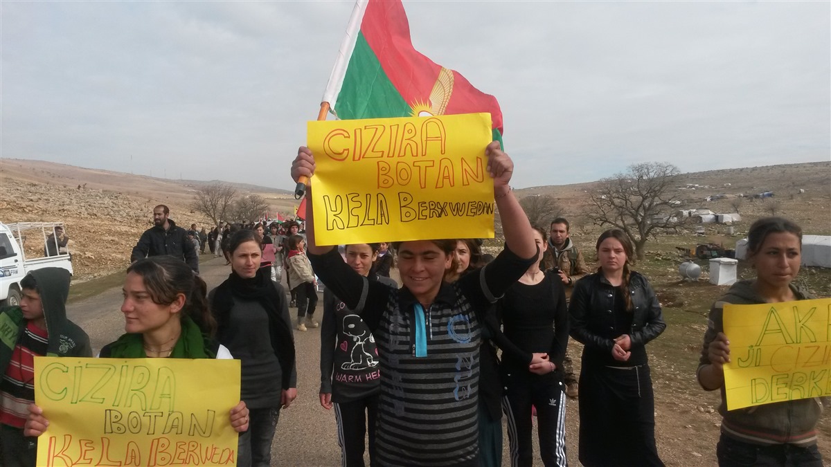 An der Demonstration nahmen hunderte Mensche mit Transparenten teil, auf denen Märtyrer_innen (Gefallene) der YPS (Yekîneyên Parastina Sivîl – Zivilen Verteidigungseinheiten) und YPS-Jin (Yekîneyên Parastina Sivîl-Jin – Zivilen Frauenverteidigungseinheiten) abgebildet waren.