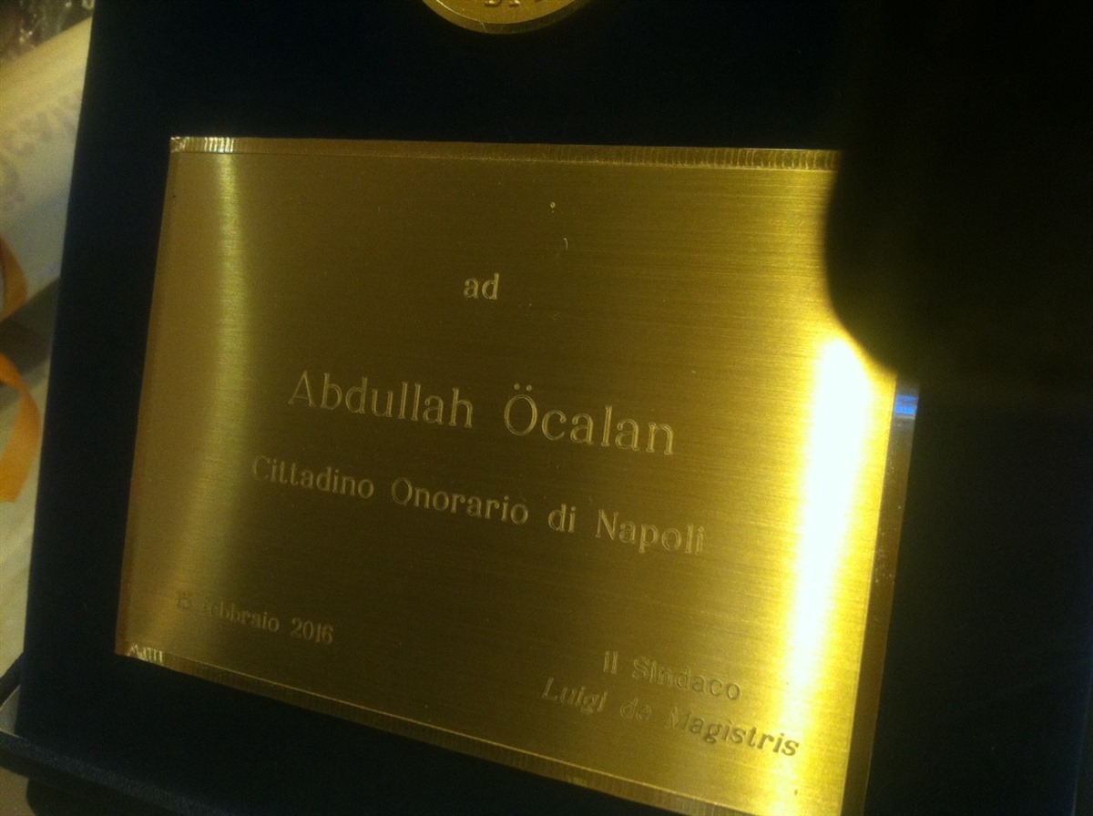 Italien/Neapel – Im Rahmen einer offiziellen Zeremonie wurde Abdullah Öcalan in Neapel zum Ehrenbürger der Stadt ernannt. An der Ernennung nahmen neben dem Bürgermeister Luigi de Magistris, Mitglieder der Stadtverwaltung, ein Rechtanwalt Öcalans Carmine Malinconico, die HDP-Abgeordnete Dilek Öcalan, das Kurdistan Informationsbüro und Mitglieder von Solidaritätskomitees teil.