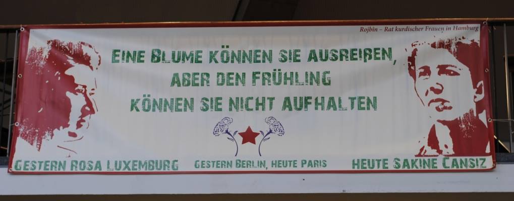 Dabei stützen wir uns auf das Erbe von Frauen wie Clara Zetkin und Rosa Luxemburg. In der jüngeren Vergangenheit sind es kurdische Frauen wie Zilan, Beritan, Sara, Arin, Seve und unzählige weitere, die im Kampf ihr Leben verloren haben und uns den Weg weisen.