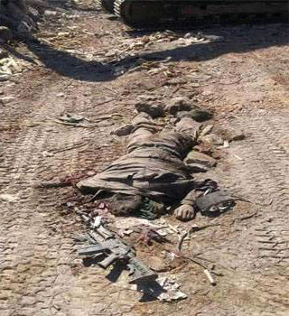 Das zweite Bild zeigt den Leichnam eines jungen Mannes, langgestreckt, das Gesicht und der Körper in die Erde gedrückt. Spuren im Boden zeigen, dass der Länge nach ein Panzer mit Ketten über ihn gefahren sein muss. Bei dem Toten soll es sich um Mahsun Gürkan handeln. Eine Armlänge vor ihm entfernt liegt eine langläufige Waffe auf dem Boden. Allerdings, und dass lässt einen stutzig werden, ist sie im Gegensatz zu ihm nicht in den Boden gedrückt …