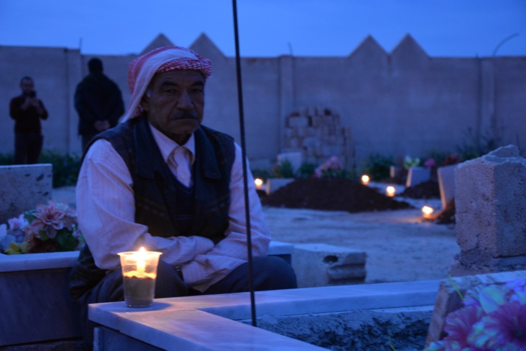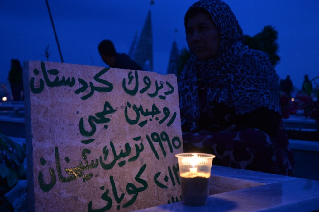 Nach einer Schweigeminute wurden Blumen für die Märtyrer*innen der Revolution niedergelegt und Kerzen an den Gräbern der gefallenen kurdischen Kämpfer*innen angezündet.
