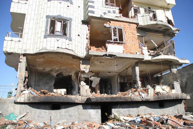 Im Stadtteil Turgut Özal kam es am 19. Tag der Ausgangssperre zu einem heftigen Gefecht zwischen den zivilen Sicherheitseinheiten YPS und staatlichen Kräften. Das Gefecht konzentrierte sich um ein dreistöckiges Gebäude in der Pınar Caddesi. Bei dem Gefecht wurden 6 Kämpfer der YPS verletzt. Mittlerweile gibt es Anhaltspunkte dafür, dass sie ermordet wurden. Das Gebäude ist durch das Gefecht nahezu zerstört. Gebrannt hat aber nur der Keller. Augenzeugen berichteten, dass die 6 Verletzten in dem Keller Schutz gesucht hätten. Danach wurde das Gebäude von Seiten staatlicher Kräfte mit schweren Waffen unter Beschuss genommen. Anschließend wurde der Keller in Brand gesteckt. Zu dem Zeitpunkt waren die sechs noch im Keller. Danach konnten nur noch ihre Leichname geborgen werden.