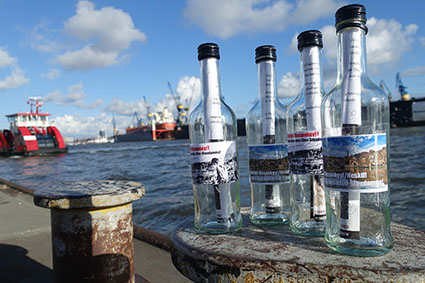 Wir haben mehrere Flaschen mit „Flaschenpost“ (Infomaterial und folgenden Text) auf den Weg gebracht: