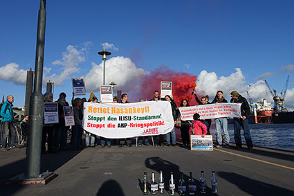 Wir grüßen die Ökologiebewegung Mesopotamiens, die heute zu einem internationalen Protesttag gegen den geplanten Ilisu-Staudamm aufgerufen hat. Wir hier in Hamburg haben in den letzten Jahren immer wieder gegen Großprojekte wie gegen die Staudammpolitik in Nordkurdistan und für die Rettung der historischen Stadt Hasankeyfs (kurdisch: Heskif) demonstriert. Auch mit Erfolg, einige Großinvestoren und der Weltmarktführer im Warenkreditversicherungsgeschäft Euler Hermes haben sich aus diesem Projekt zurückgezogen.
