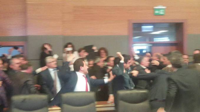 Vorangegangen war dem, wie schon auf der Sitzung letzter Woche, ein handfester Angriff auf die Abgeordneten der HDP. Zu der Auseinandersetzung während der Diskussion zur Gesetzesänderung kam es, nachdem der Abgeordnete der AKP Metin Metiner die Abgeordnete Garo Paylan (HDP) von hinten angegriffen hatte. Der Abgeordnete Idris Baluken, Fraktionsvorsitzender der HDP, warf sich schützend dazwischen, woraufhin er zur Zielscheibe der Abgeordneten der AKP wurde. Im Verlauf des Angriffs auf ihn ging Idris Baluken zu Boden, war auch da weiterhin den Angriffen der Abgeordneten der AKP ausgesetzt. Idris Baluken wurde erheblich verletzt.