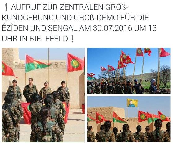 ‼ AUFRUF ZUR ZENTRALEN GROß-KUNDGEBUNG UND GROß-DEMONSTRATION FÜR DIE ÊZÎDEN UND ŞENGAL AM 30.07.2016 UM 13 UHR IN BIELEFELD ‼
