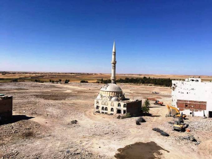 Bakur/Nordkurdistan – Die Nachrichtenagentur Dicle Haber Ajansi DIHA hat jetzt ein Foto eines Stadtteils von Nisêbîn (Nusaybin) veröffentlicht. Das Foto zeigt oder besser es zeigt nichts, denn den Stadtteil Kanîka (Zeynelabidin) gibt es nicht mehr. Er wurde ausradiert. Ausgelöscht in 7 Monaten Ausgangssperre, verhängt vom türkischen Staat. Vom ganzen Stadtteil ist nur noch ein Gebäude und eine Moschee übrig. Alle anderen Gebäude wurden ausgelöscht. Im zur Provinz Mêrdîn (Mardin) gehörenden Landkreis Nisêbîn war am 14. März 2016 die Ausgangssperre verhängt worden. Nach 134 Tagen wurde sie in 9 Stadtteilen aufgehoben, in 6 weiteren dauert sie hingegen weiter an. Während dessen setzt das türkische Regime seine „Abrißarbeiten“ fort. Das Foto vom Stadtteil Zeynelabidin-Kışla läßt erahnen, was das für Folgen haben wird. Der Stadtteil Zeynelabidin liegt an der Grenze zu Syrien. Auf der anderen Seite der Grenze liegt die Stadt Qamişlo. Mit Auslöschen des Stadtteils wurde auch die erste Universität der Welt überhaupt, die Nisîbîs Universität, vernichtet.