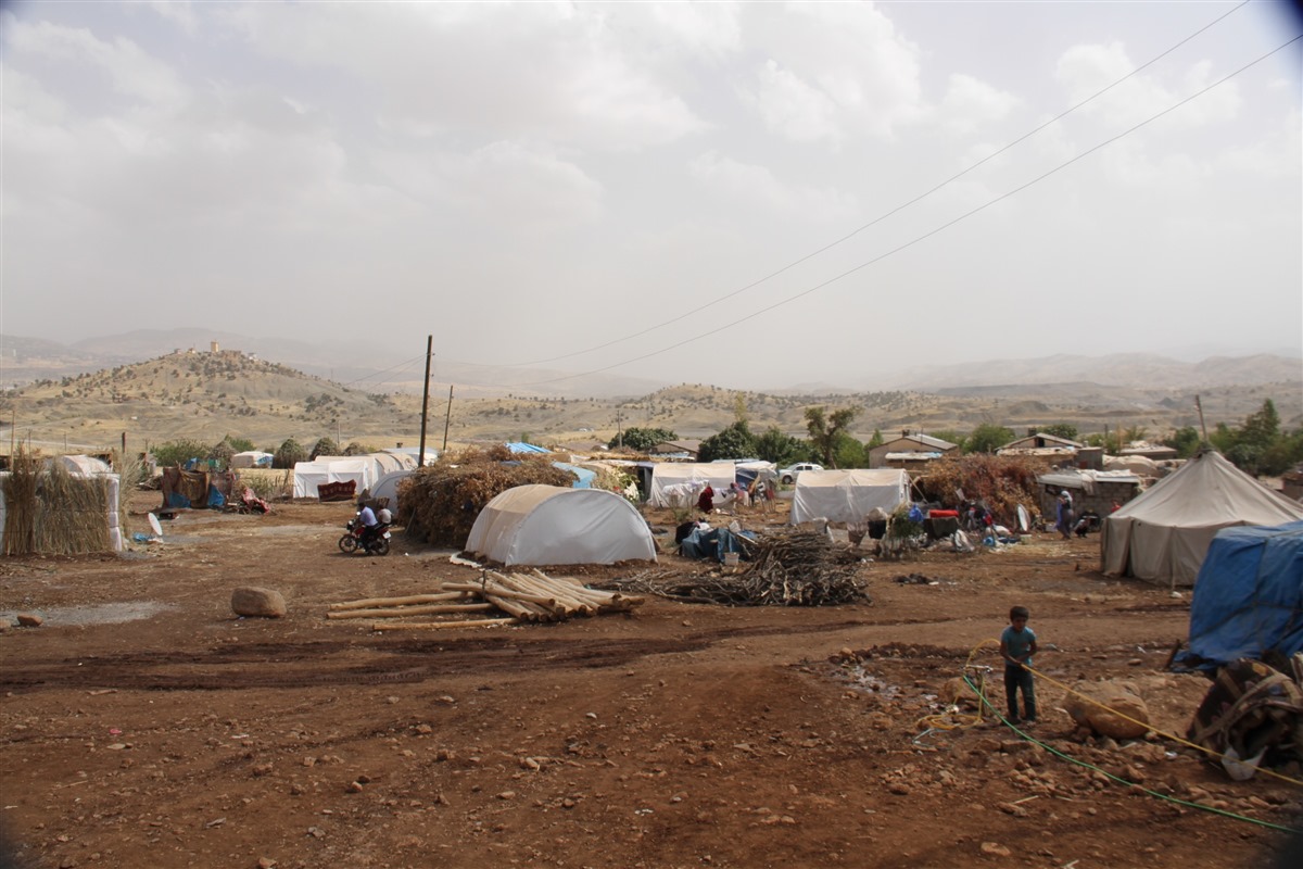 Die Bevölkerung von Şirnex, die mit Verhängung der Ausgangssperre ihre Häuser und Wohnungen verlassen mussten, sie sind nicht abgewandert. Sie sind geblieben, haben an den Hängen der angrenzenden Berge, des Cudi und Gabar, Schutz gesucht und Unterschlupf gefunden. Sie errichteten ihre Zelte so, dass sie von dort aus ihre Stadt sehen können. Hier leben sie jetzt. Etwa 3.000 Familien, rund 10.000 Menschen. An vielen Stellen schossen Zeltsstädte aus dem Boden. Der Konutlar mevkii (Platz der Wohnungen) genannte Ort ist nur eine von vielen. Die Bedürfnisse derer, die hier sind, werden von den Rathäusern von Şirnex und Dergûl (Kumçatı) getragen. Denn die Familien selbst haben mit Verhängung der Ausgangssperre nicht nur ihr Dach über dem Kopf verloren sondern alles, auch ihre Arbeit und ihr Einkommen – dementsprechend groß ist die Not. Aber die Solidarität untereinander macht vieles wett, denn nur so lässt sich das Leben meistern. Neben der Sicherstellung einer Wasserversorgung haben sie einen Backofen errichtet. Es sind Toiletten gebaut und es gibt die Möglichkeit zu duschen. Doch die Nächte werden bereits kälter. Der Herbst und damit der Winter naht. Im Winter kann man hier nicht bleiben. Der Boden, auf denen die Zelte errichtet sind, besteht aus Erde. Wenn der erste Regen kommt, wird er aufweichen und das Leben hier dann zur Qual machen. Vor der Hitze wurden die Zelte mit Zweigen abgedeckt. Doch wie sollen sie sich vor der Kälte des Winters schützen? Im Winter fallen die Temperaturen in Şirnex sehr tief, meterhoch wird dann der Schnee liegen. Was soll dann aus den Kindern werden die hier leben? Eine Schule gibt es hier nicht. Seit der Verhängung der Ausgangssperre können sie nicht mehr zur Schule gehen. Als die Operationen noch andauerten haben die Menschen hier von den Hügeln aus beobachtet, was unten in der Stadt passierte. Seit Monaten ist die Militäroperation beendet, doch die seit dem 14. März dieses Jahres verhängte Ausgangssperre dauert weiterhin an.Familienpatenschaften – Für die Würde der Menschen in Kurdistan