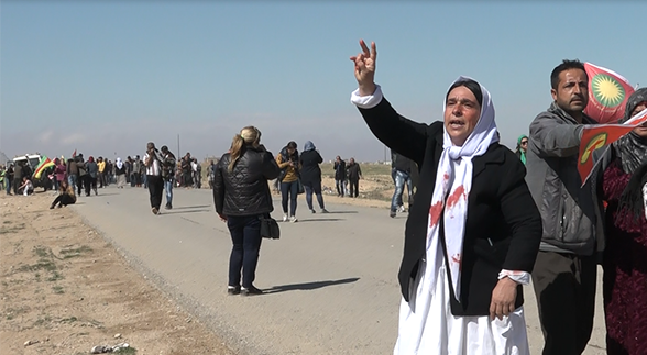 Auch die Mütter in Rojava sind beim Kampf für die Freiheit ganz vorne dabei. Am 6. März zogen jung und alt, besonders aus der nahe an der Grenze liegenden Stadt Derik und aus Hesekê an die Stelle des Weges von Rojava nach Şengal, die von den Peşmerge blockiert wird. Die Peşmerge, schwer bewaffnet, versuchten die Menge durch Schüsse einzuschüchtern und davon abzuhalten bis zur Absperrung vorzurücken, doch ohne Erfolg.