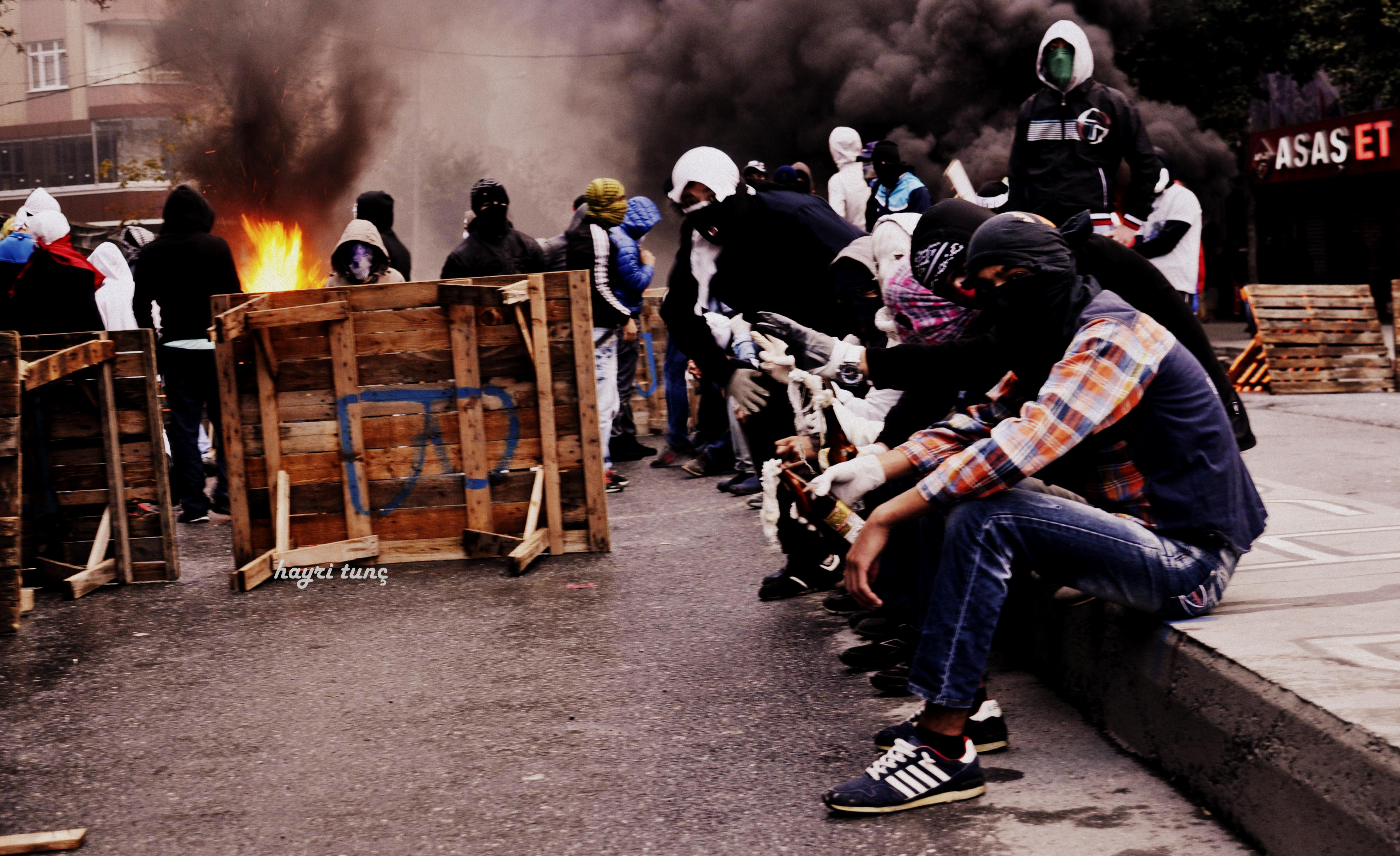 Jugend an brennender Barrikade