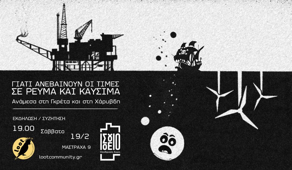 Posted on 16. February 202220. June 2022 by groundΕκδήλωση με την Αυτόνομη εργατική συνέλευση Loot: Γιατί ανεβαίνουν οι τιμές σε ρεύμα και καύσιμα; εκδήλωση – συζήτηση με την αυτόνομη εργατική συνέλευση Loot Σάββατο 19 Φλεβάρη, ώρα 19:00