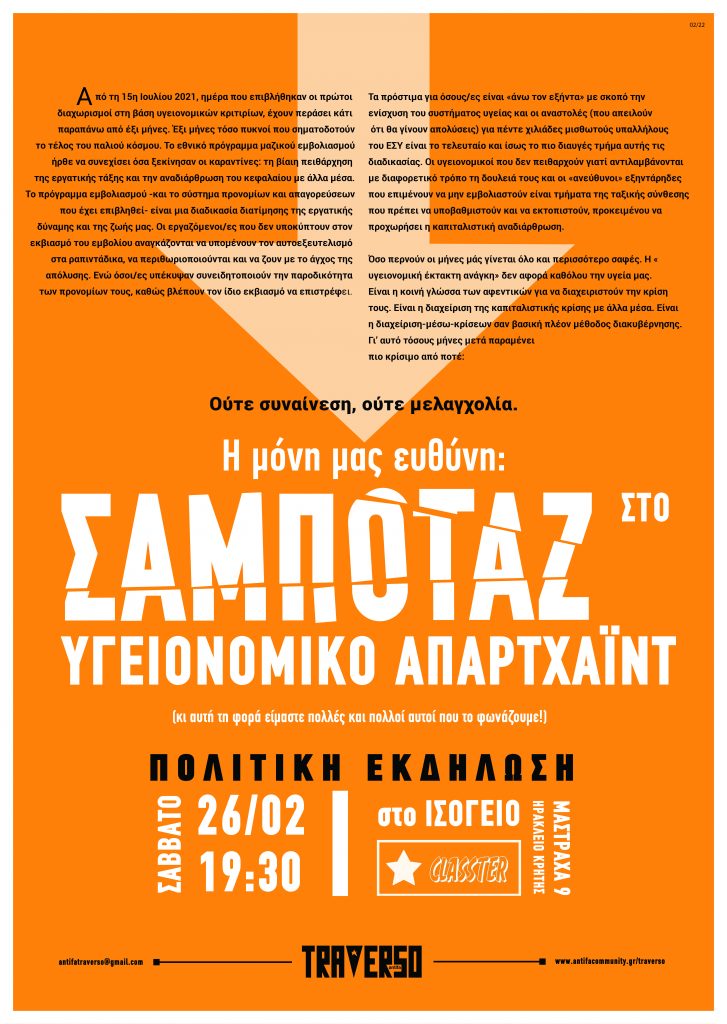Posted on 2. March 202220. June 2022 by groundΕκδήλωση με το περιοδικό Traverso Antifa εκδήλωση-συζήτηση με τη συντακτική ομάδα του περιοδικού Traverso Antifa