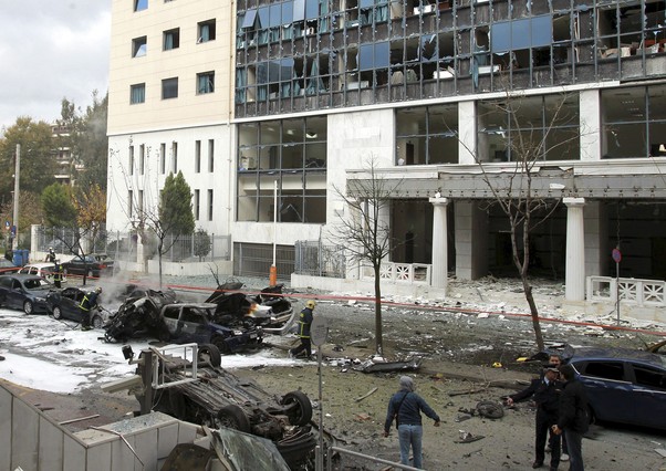 PAN06 ATENAS (GRECIA) 30/12/2010.- Miembros de bomberos y de la policía de investigaciones trabajan tras una explosión de gran intensidad que sacudió la sede de los tribunales de justicia de asuntos administrativos en Atenas (Grecia), hoy, jueves 30 de diciembre de 2010. La policía informó que el atentado, que ocurrió hacia las 08.20 hora local, provocó serios daños materiales pero no dejó víctimas, ya que hubo una llamada telefónica al periódico ateniense “Elefterotipia” con 40 minutos de anticipación, lo que dio tiempo a las autoridades para evacuar el edificio. Según las primeras informaciones del canal estatal NET, se trata de una moto bomba, que estaba aparcada delante del tribunal. EFE/PANTELIS SAITAS