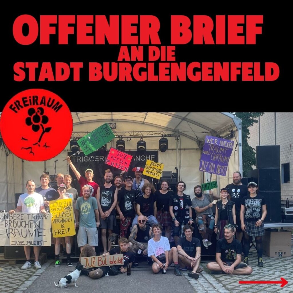 Wir haben die letzen Tage einen offenen Brief and Stadt Burglengenfeld abgeschickt in dem verschiedene (teils ehmalige) JuZ Mitglieder und verschiedene Politker*innen um den Kauf und erhalt der Wohnungen und den Vereinen gebeten haben. Den Brief köent ihr im folgenden lesen: