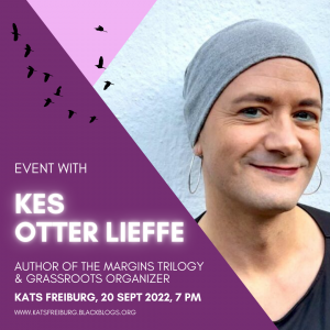 Die Veranstaltung wird drinnen im Café stattfinden, welches ein rauchfreier Raum ist. Dieser Ort ist nur über mehrere Stufen erreichbar, d.h. nicht rollstuhlzugänglich ohne Unterstützung. Testet euch vorher gegen Covid und tragt drinnen eine medizinische Maske. Es gibt keine Parkplätze vor Ort.