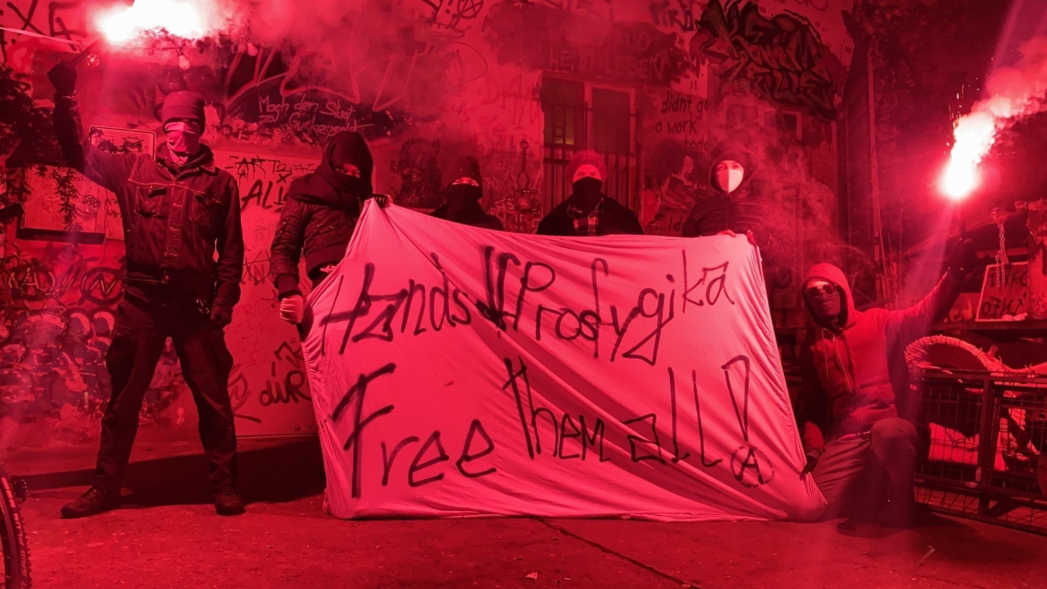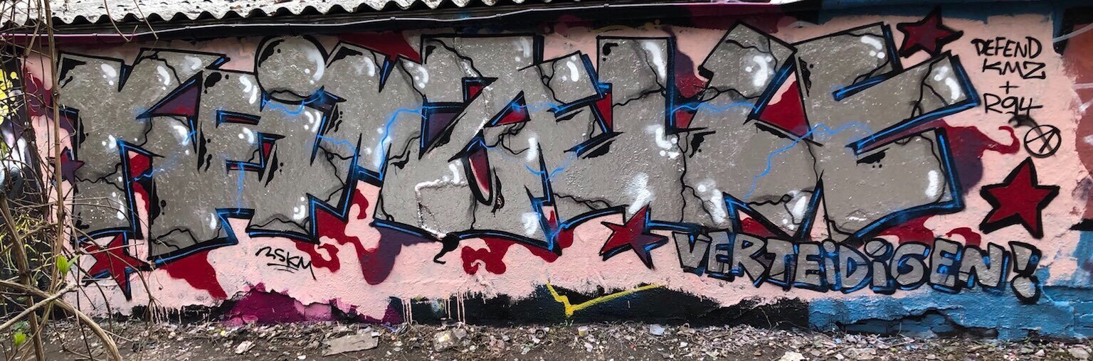 Galerie Solibild für die Squatted Community of Prosfygika in Athen, welches Ende November 2022 von staatlicher Seite brutal angegriffen wurde. Solibild für die Keimze Flyerlayout der Keimzelle Keimzellenlogo 1.0 Keimzellenlogo 2.0