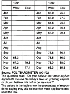 Abbildung 2: Perceived Misuse of Asylum Laws. (POLITBAROMETER 1991/1992 zitiert nach Ohlemacher 1994, S.230)