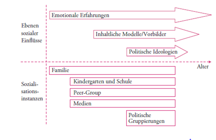 Abbildung 7: Relevante Sozialisationsbedingungen für die Übernahme fremdenfeindlicher Orientierungen. (Rieker 2007, S.38)
