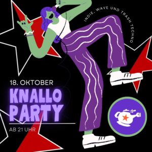 Das Knallo feiert am Freitag, dem 18.10. ab 21 Uhr die Knallo-Party zum Semesterstart mit Indie, Wave und Trash Techno.