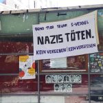 Am Sonntag, den 23. August zwischen 9 und 10 Uhr morgens wurde von mehreren Cops ein Transparent mit der Aufschrift: „Nazis töten. Kein Vergeben / Kein Vergessen“ am Café Knallhart in Hamburg geklaut. Bereits in Bielefeld wurden Plakate der Partei DIE PARTEI beschlagnahmt, welche die Aufschrift „Nazis töten.“ enthielten. Im Nachhinein wurde sogar gerichtlich festgestellt, dass die Beschlagnahmung rechtswidrig war¹.