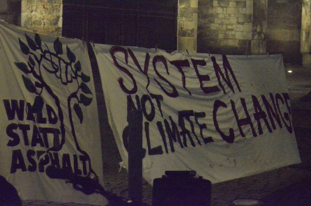 Um während der letzten Tage der Rodungssaison (die geht bis Anfang März) haben einige Aktivist*innen kurzerhand sich in die Bäume gehangen.