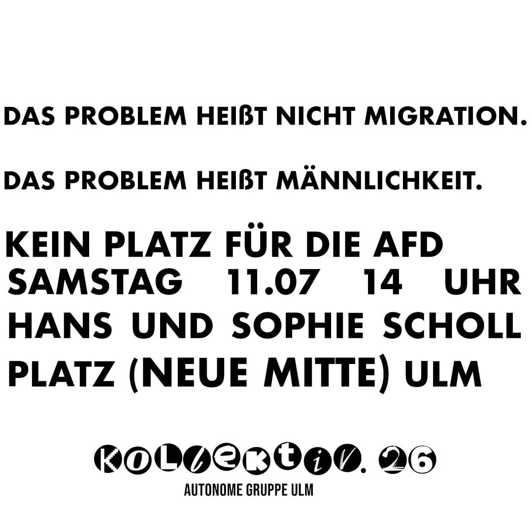 Die Forderungen werden gestellt von: Kollektiv.26 – Autonome Gruppe Ulm, Young and Queer Ulm e.V., Jusos Ulm, Grüne Jugend Ulm, Neu-Ulm, Alb-Donau, DIE LINKE Ulm / Alb-Donau, Mein „Ich“ gegen Rassismus