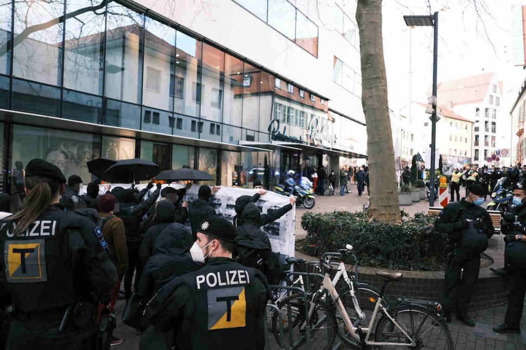 Wie schon im Dezember 2020 lies die Polizei Querdenken Teilnehmer:innen von Querdenken durch ihre Ketten zur angemeldeten Gegendemonstration. Darunter bundesweit bekannte und extrem rechte Medienaktivist:innen.