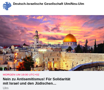 - Der Oberbürgermeister und einige andere, die sich jetzt temporär mit Israel solidarisieren und dann doch bei den nächsten Ulmer Friedenswochen wieder mitmachen. Die Ulmer Friedenswochen sind wohl vieles, aber sich glaubhaft von Antisemitismus zu distanzieren können sie nicht.