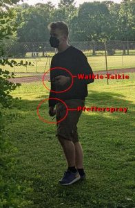 - Zum anderen wurden mindestens zwei Personen gesehen, die sich mit Walkie Talkies und etwas, das nach Pfefferspray Kanistern aussah, in der näheren Umgebung befanden, aber sobald die erste Streife da war, schnell entfernten. Laut mehreren Berichten ist unsere aktuelle Vermutung, dass es sich hier um rechte Personen handelte. Beamte in Zivil sind nach der Personenbeschreibung, dem Verhalten und dem Timing nach auszuschließen. Es ist denkbar, dass es durch Handys schnell informierte Kameraden oder in der Nähe wohnende Personen handelt.