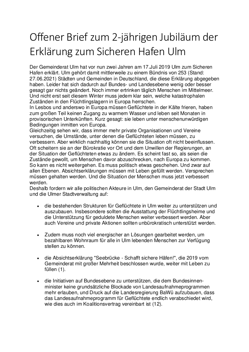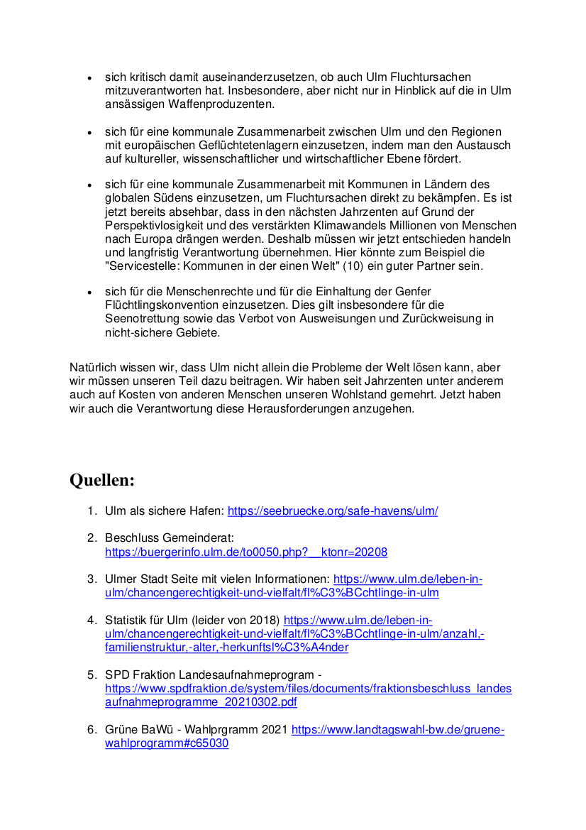 Auf der Suche nach einem besseren Leben, auf der Suche nach irgendeinem leben. Es wird in sogenannte sichere Herkunftsländer abgeschoben, Frontex wird weiter aufgerüstet auch mit Technologien aus Ulm, es wird in Kauf genommen, dass Menschen im Mittelmeer ertrinken, an den Außengrenzen kommt es laufend zu push backs von Geflüchteten.
