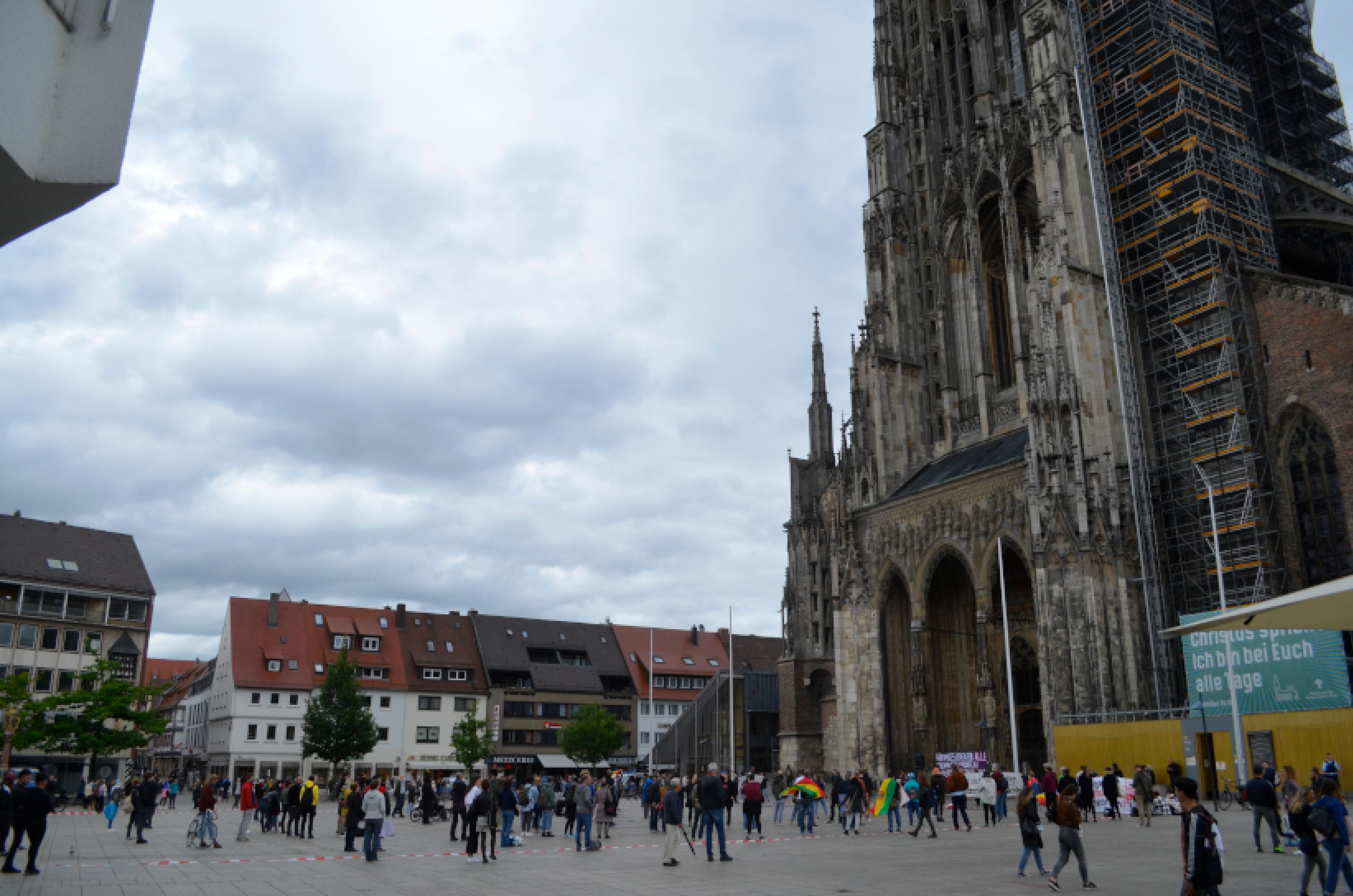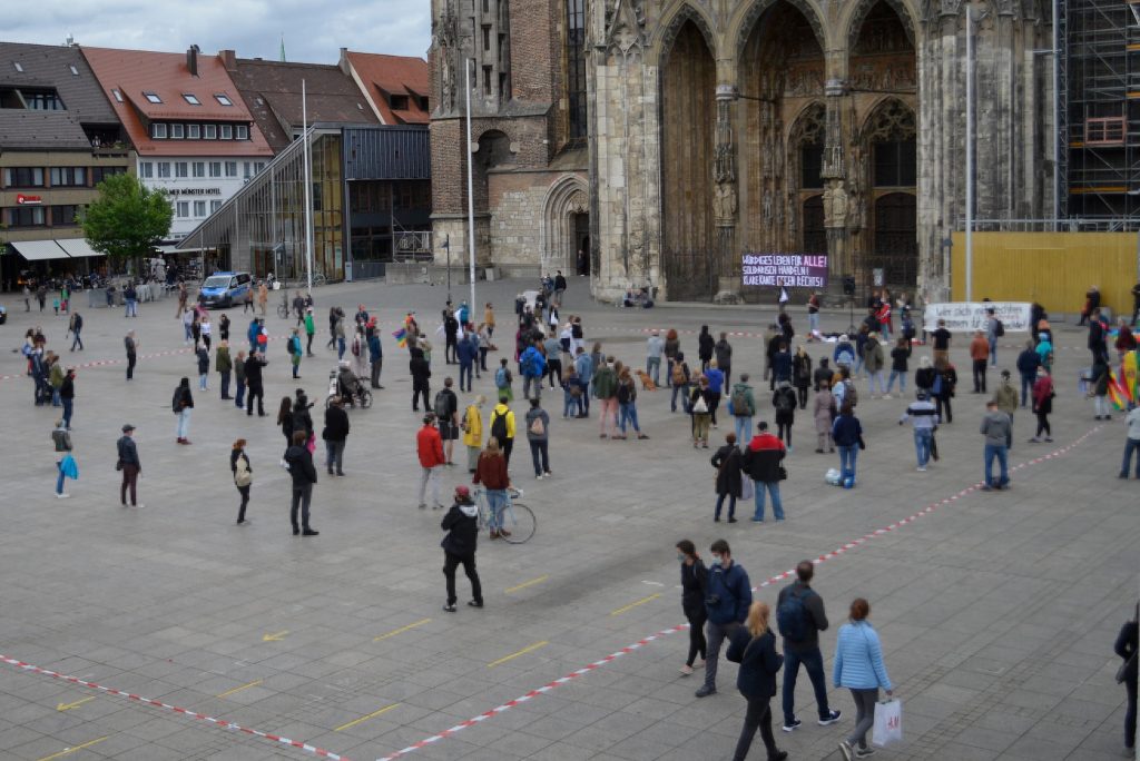 Heute sind wir hier, um den Rechten dem Münsterplatz zu nehmen. Diese verbreiten seit Wochen, unter dem Deckmantel der Maßnahmenkritik, Verschwörungsideologie und rechtes Gedankengut. Dem stellen wir uns entschieden entgegen und nutzen die Chance Alternativen aufzuzeigen und Kritik zu Formulieren.