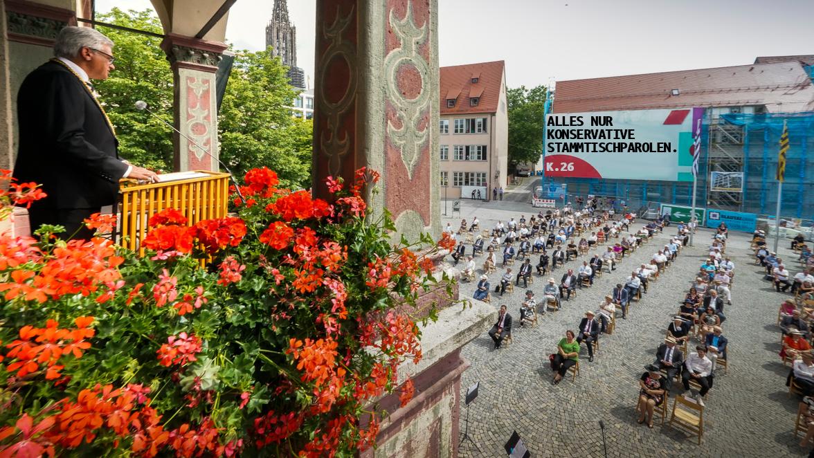 Am 20.07.2020 war der Schwörmontag, ein Ulm’er Stadtfeiertag. In der Schwörrede, die Oberbürgermeister Czisch (CDU) gestern hielt, sprach er viele Themen an. Darunter natürlich Corona und dessen Auswirkungen, Finanzpolitik, aber auch Rassismus und Ulmer Geschichte. Dabei vermischte er Themen die nicht zusammengehören und äußerte verkürzte bis falsche Thesen. Hier ein paar kritische Worte dazu von uns: